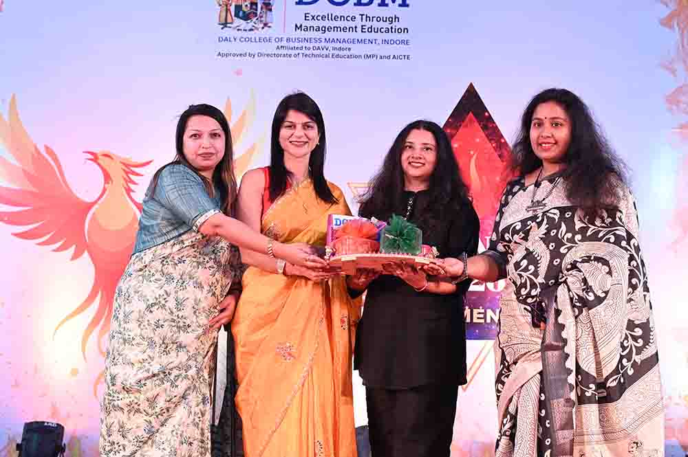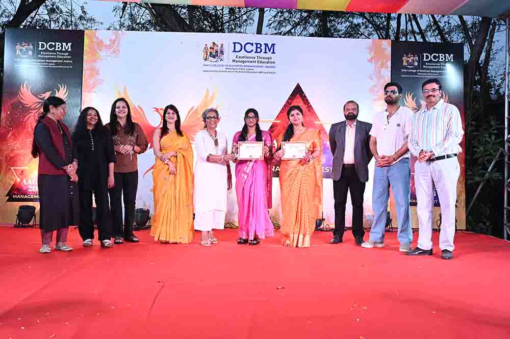 The festivities began with a symbolic and colorful start as Principal, Dr. Sonal Sisodia, released a cluster of balloons into the Indore sky, marking the official opening of a day dedicated to excellence and innovation. We were deeply honored to welcome a stellar lineup of industry leaders and creative visionaries who joined us to inspire the next generation of managers. Our Guests of Honour Ms. Piyusha Bhargava (Regional Programming Head, Red FM 93.5) and Mr. Vijay Mahnot (Founder, VMMCA & Ek Disha). We also had Judges cum Special Guests CA Pooja Sharma (Partner in Rinwa & Associates | Director at MD Milk Products Pvt.), Rj Shivv (The voice of Red FM, Indore) and Ms. Rachna Johri (Executive Director, VAK Production, Indore).